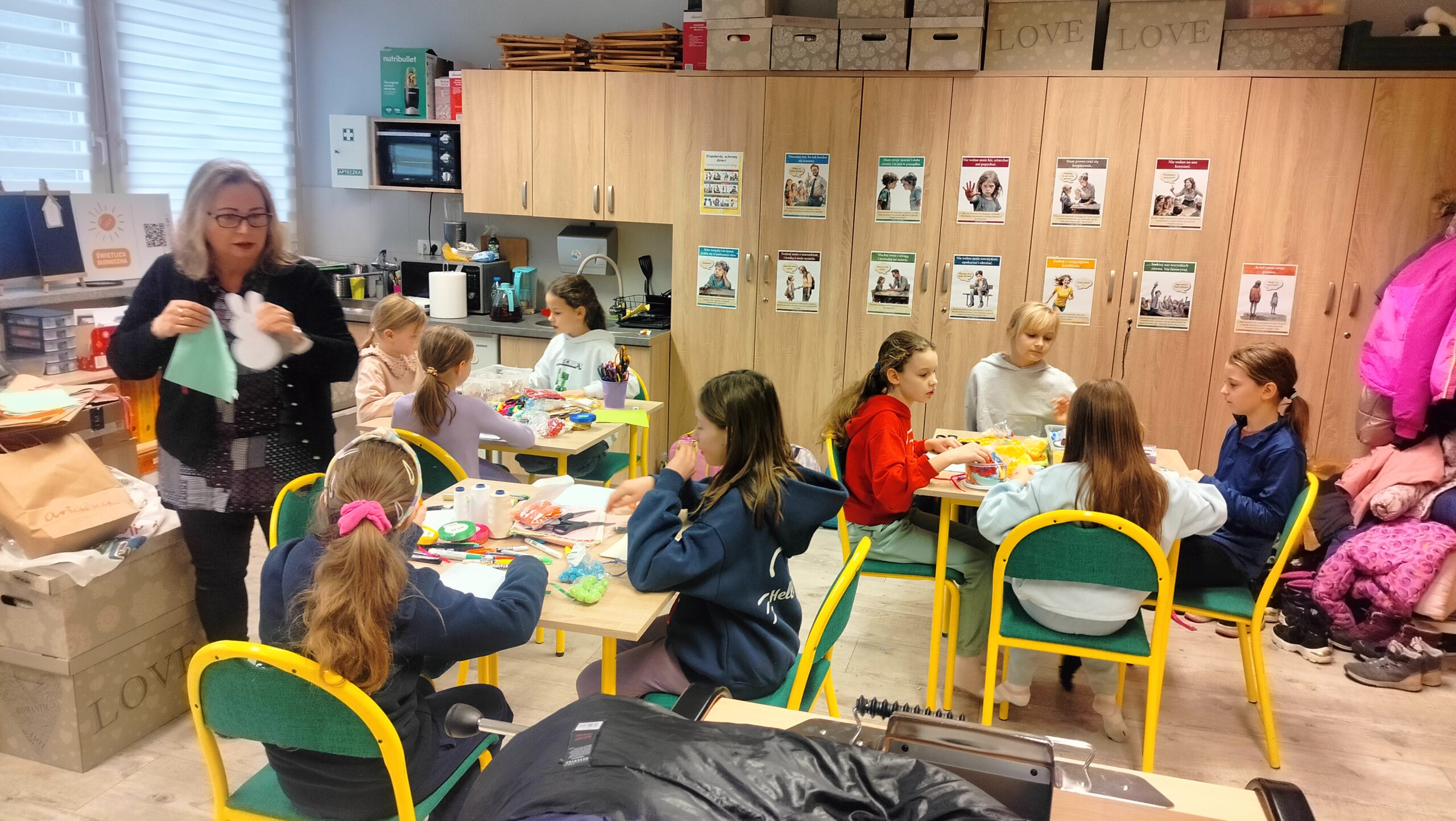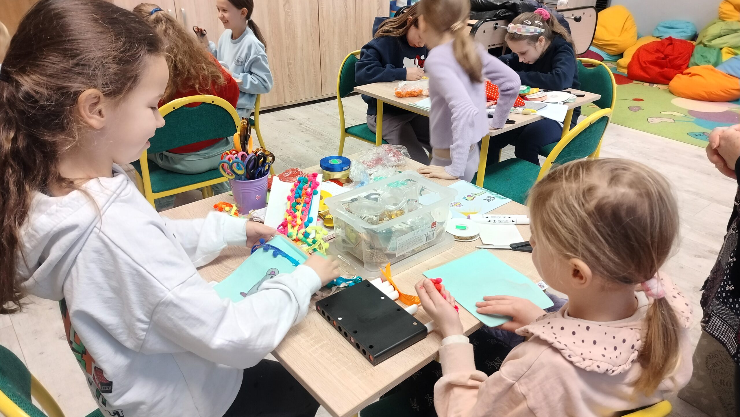 W naszej świetlicy dzieci uczestniczyły w zorganizowanych zajęciach z pracownikami Centrum RE-Start w Opolu z szycia i zdobienia woreczków szkolnych rozwijając swoje zdolności manualne.
